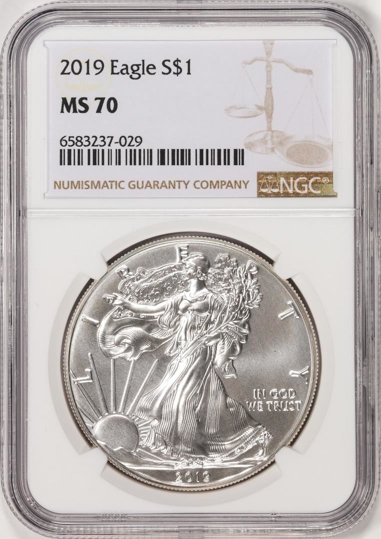 One 2019 $1 American Silver Eagle Coin NGC MS70. NGC Certified.