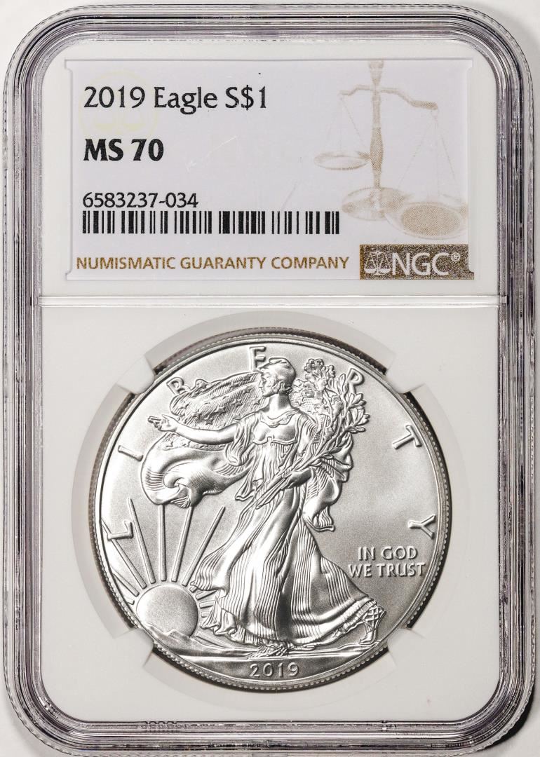 One 2019 $1 American Silver Eagle Coin NGC MS70. NGC Certified.
