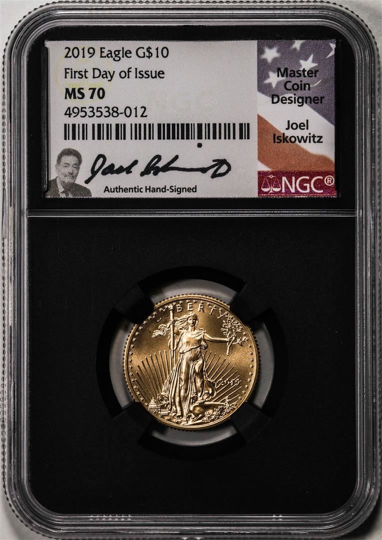 2019 $10 American Gold Eagle Coin NGC MS70 First Date Of Issue Iskowitz Signature