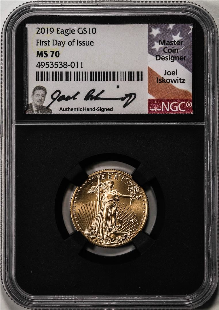 2019 $10 American Gold Eagle Coin NGC MS70 First Date Of Issue Iskowitz Signature