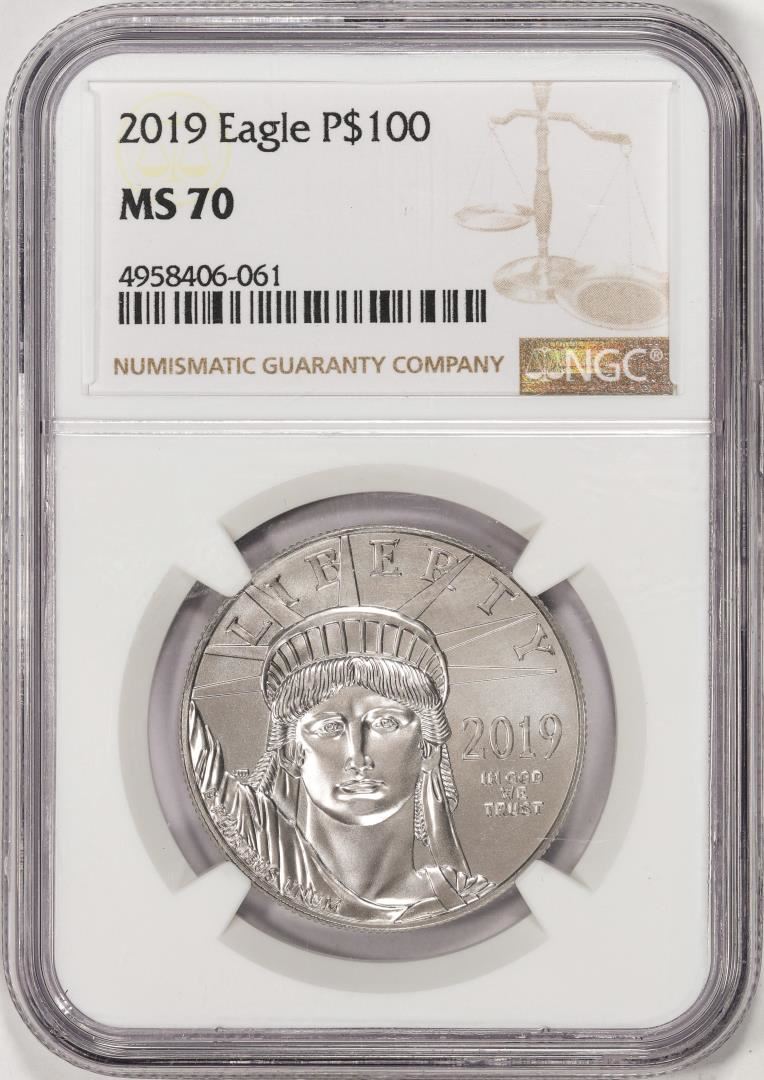 One 2019 $100 Platinum American Eagle Coin NGC MS70. NGC Certified.