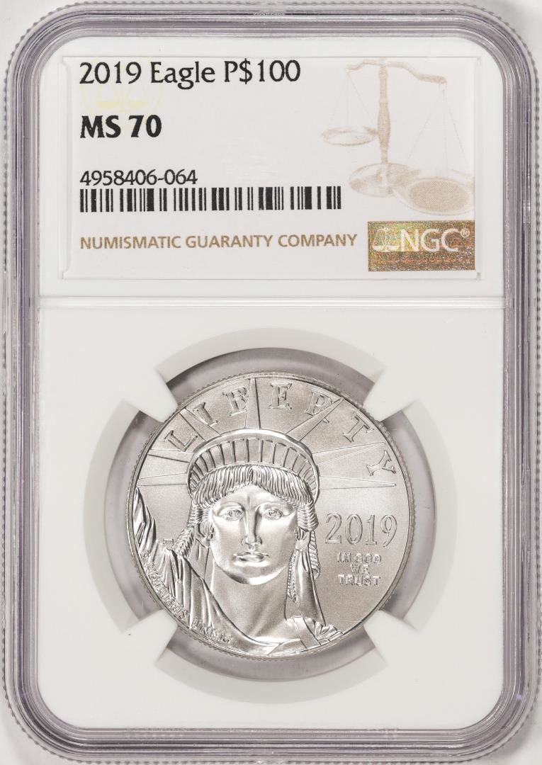 One 2019 $100 Platinum American Eagle Coin NGC MS70. NGC Certified.