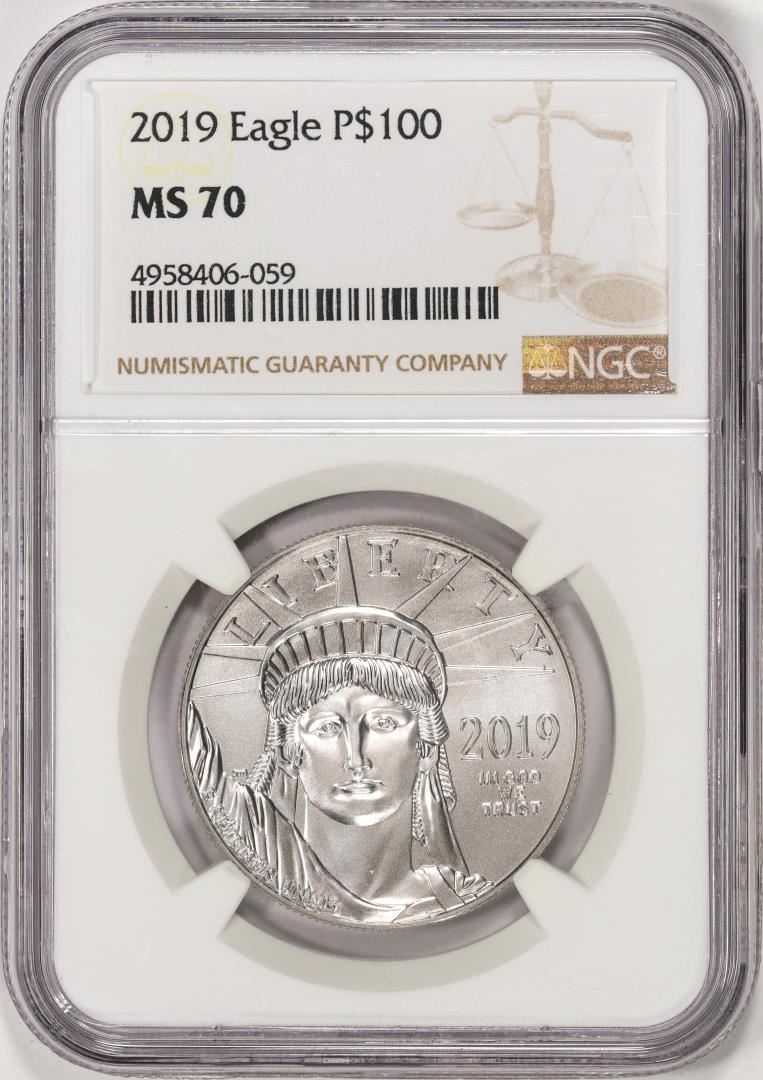 One 2019 $100 Platinum American Eagle Coin NGC MS70. NGC Certified.