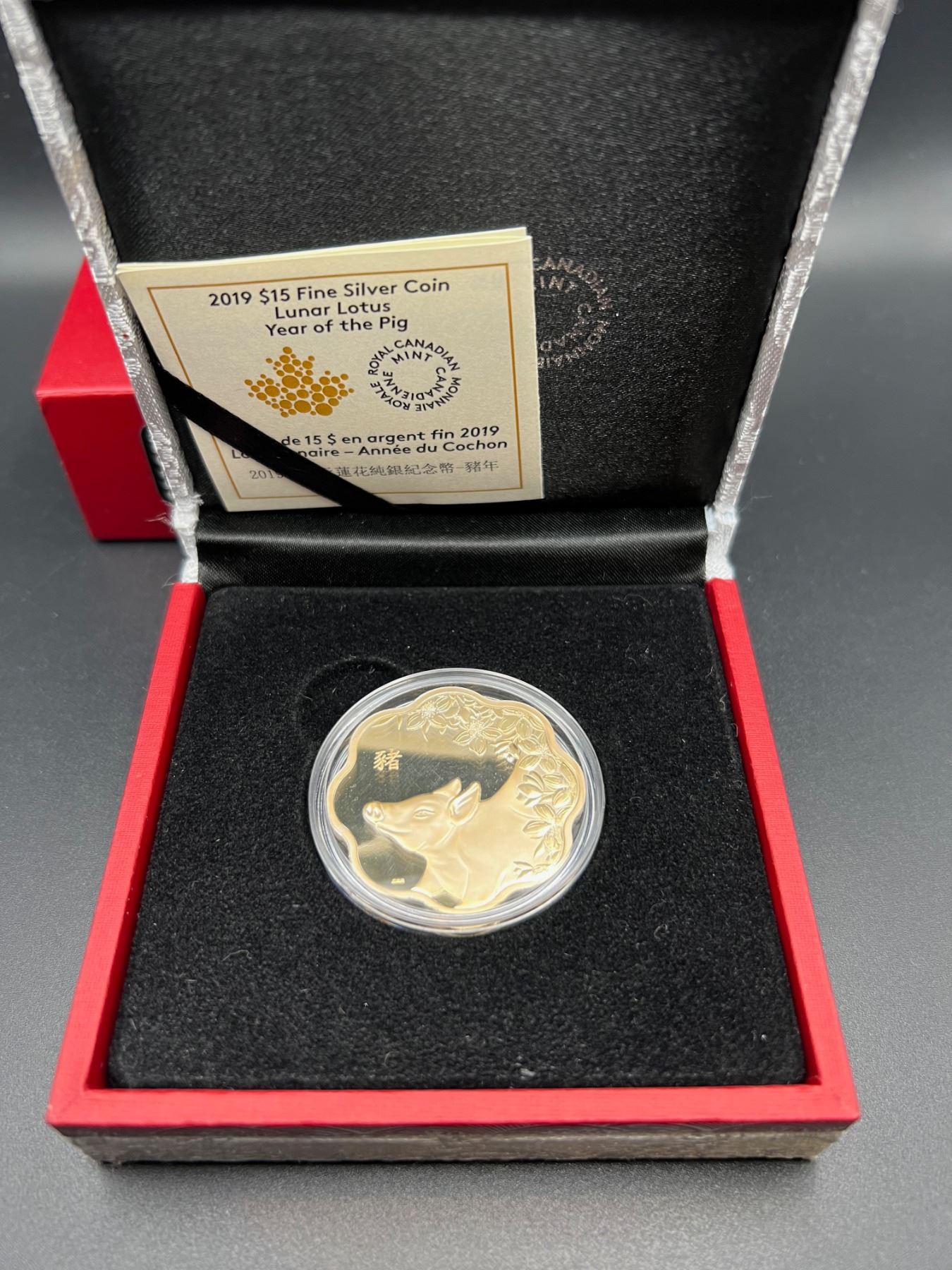 2019 $15 Fine Silver Coin- Lunar Lotus-Year of the Pig