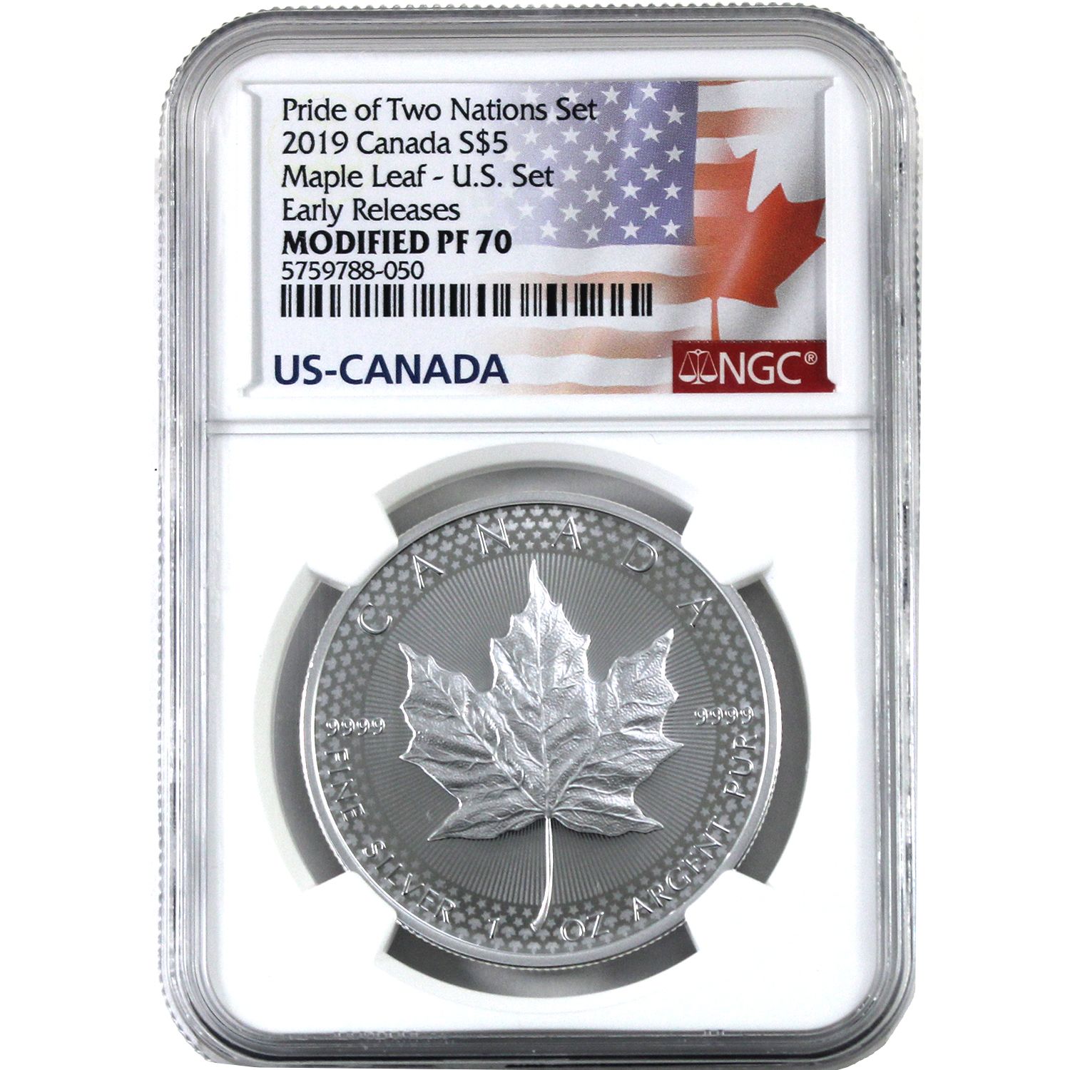 2019 1oz $5 Canada-USA Pride of Two Nations Maple Leaf - U.S. Set NGC Modified PF70 Early Releases (Tax Exempt)