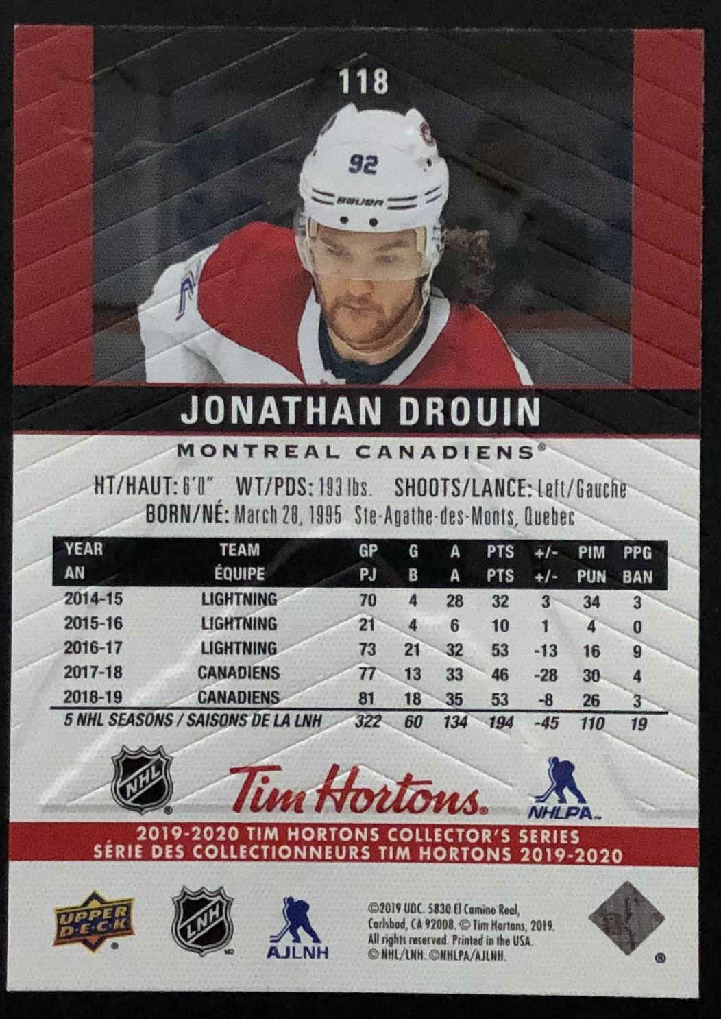Tim Hortons card #118 hockey, NHL, UD, regional