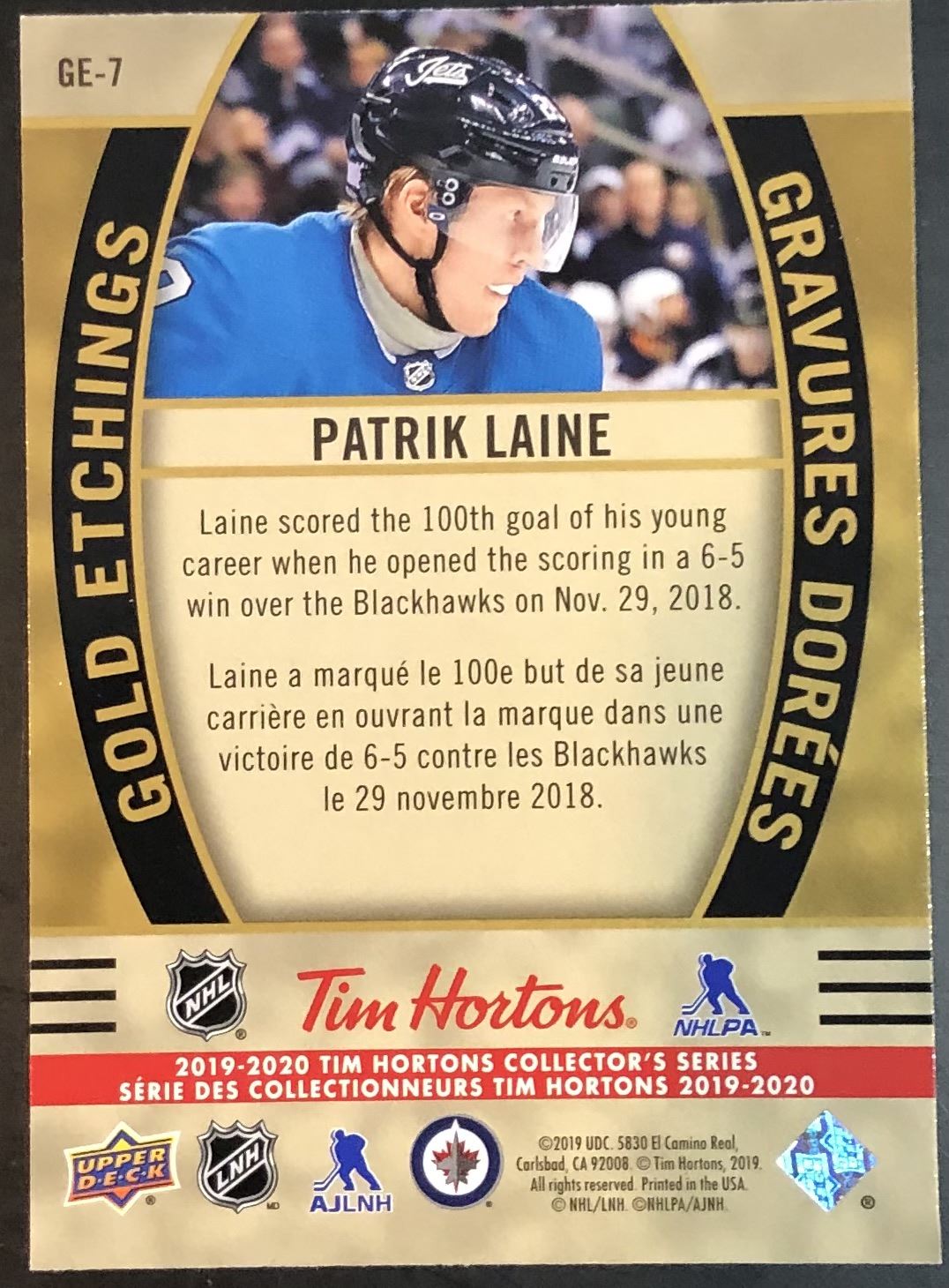 Tim Hortons card #GE-7 UD, hockey, NHL, regional