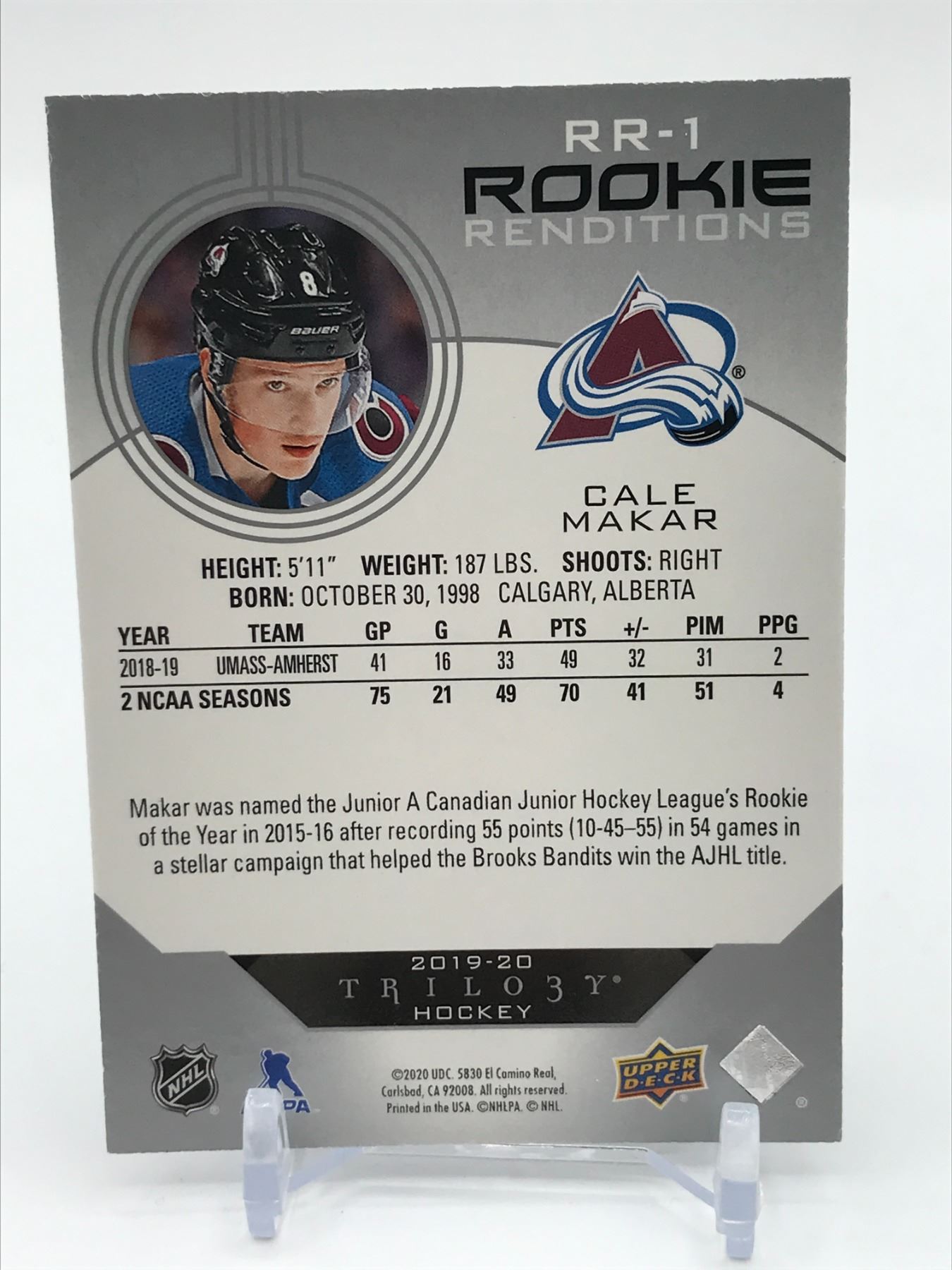 2019-20 UPPER DECK TRILOGY HOCKEY ROOKIE RENDITIONS CALE MAKAR TRADING CARD