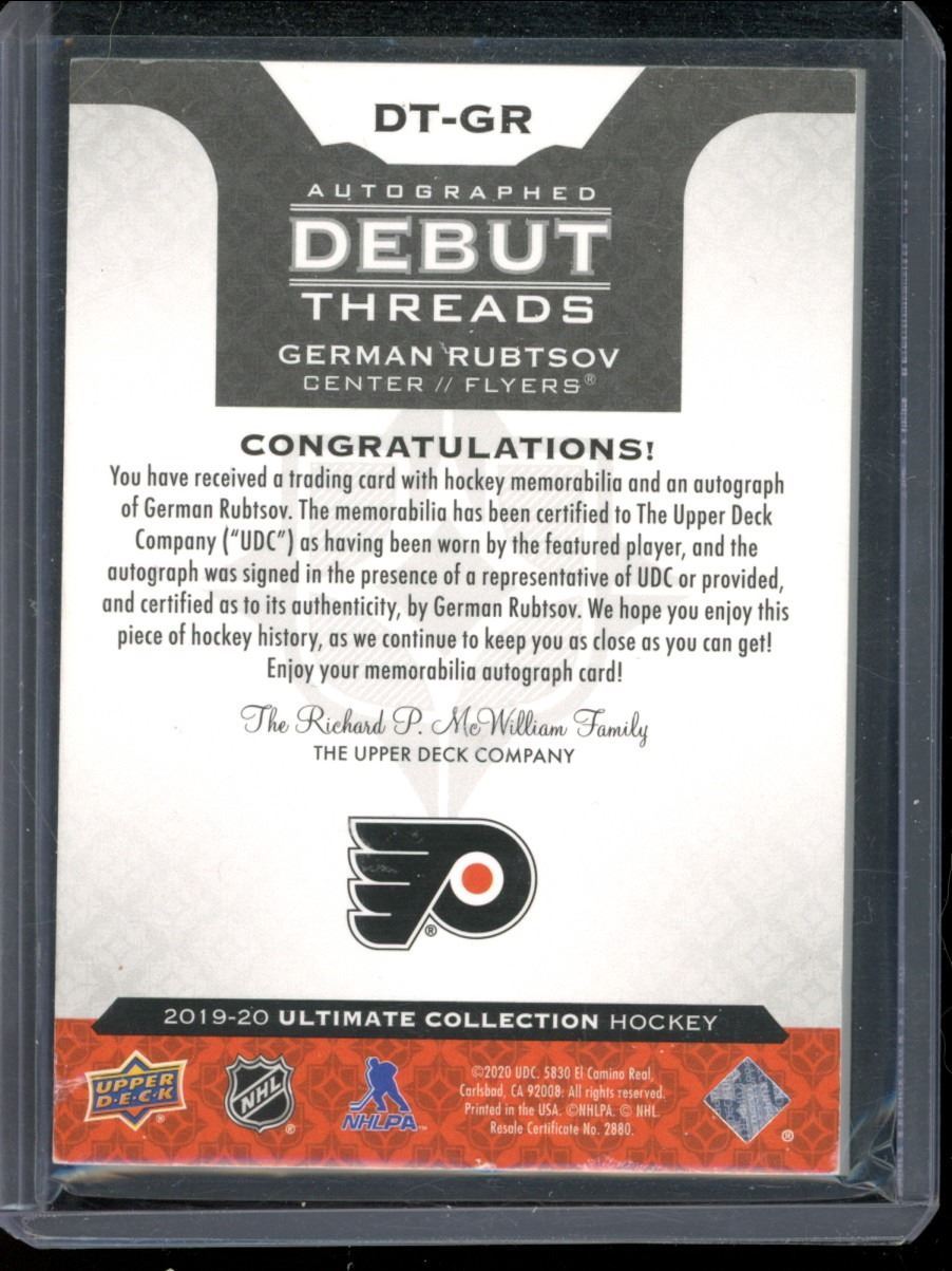 2019-20 Ultimate Collection Debut Threads Patch Autographs German Rubtsov 70/99 BV $40