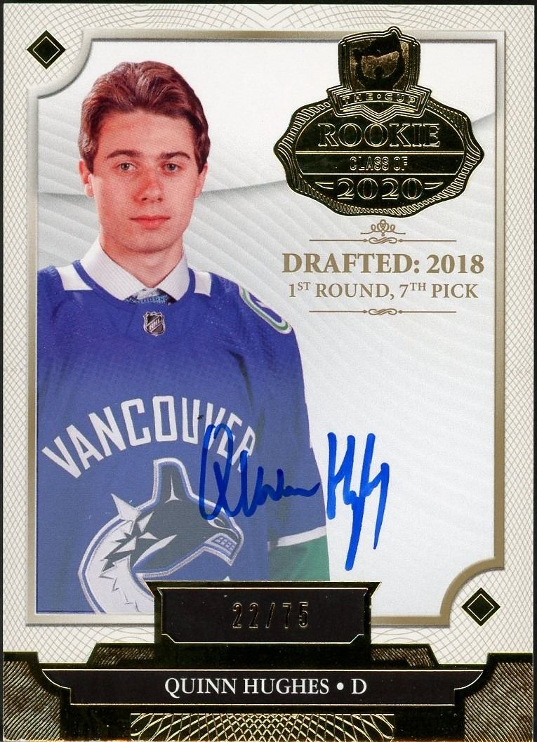 2019-20 UD The Cup rookie class gold autograph #'d to 75 of Canucks star Quinn Hughes!
