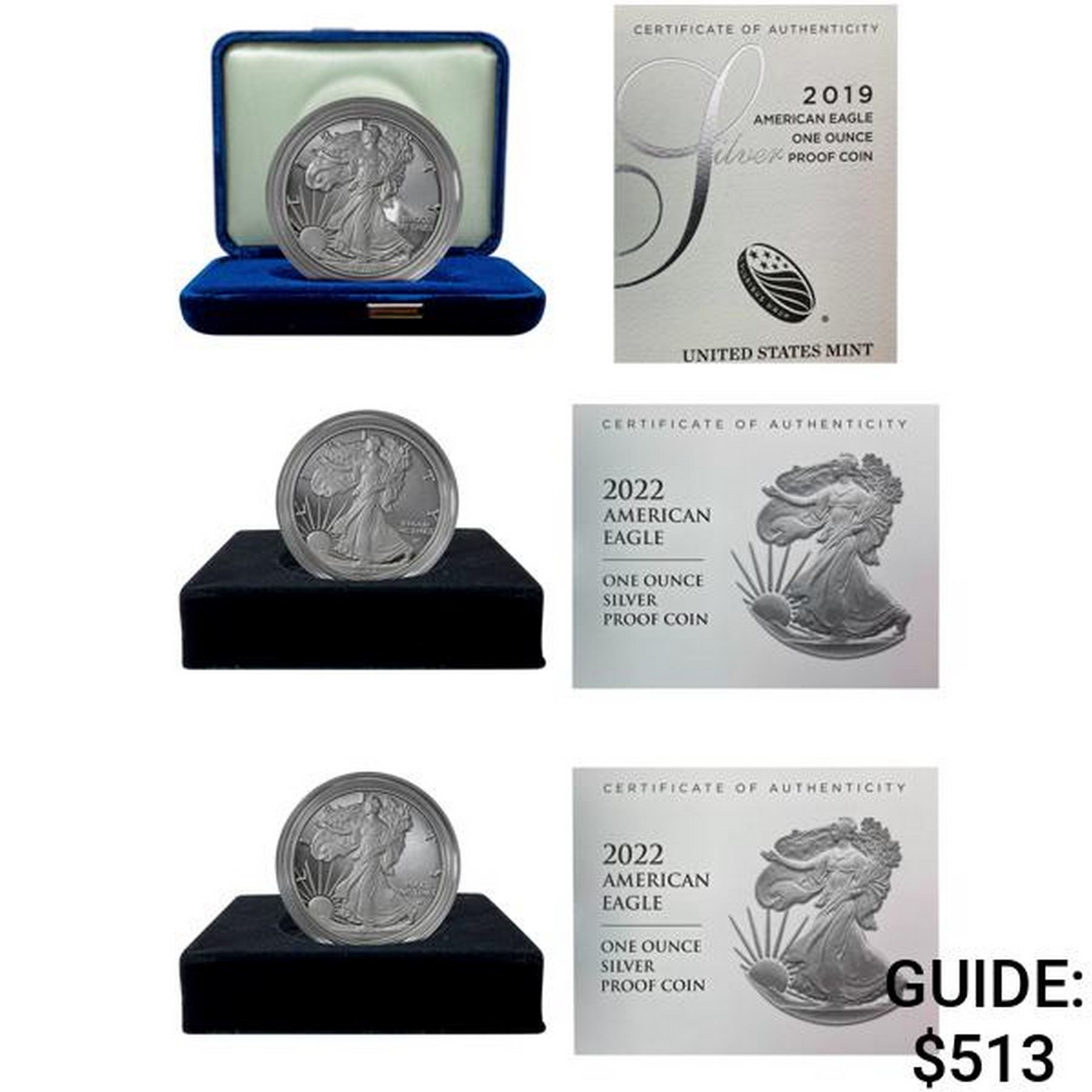 2019-2022 GEM PROOF US Silver Eagle Lot [3 Coins]