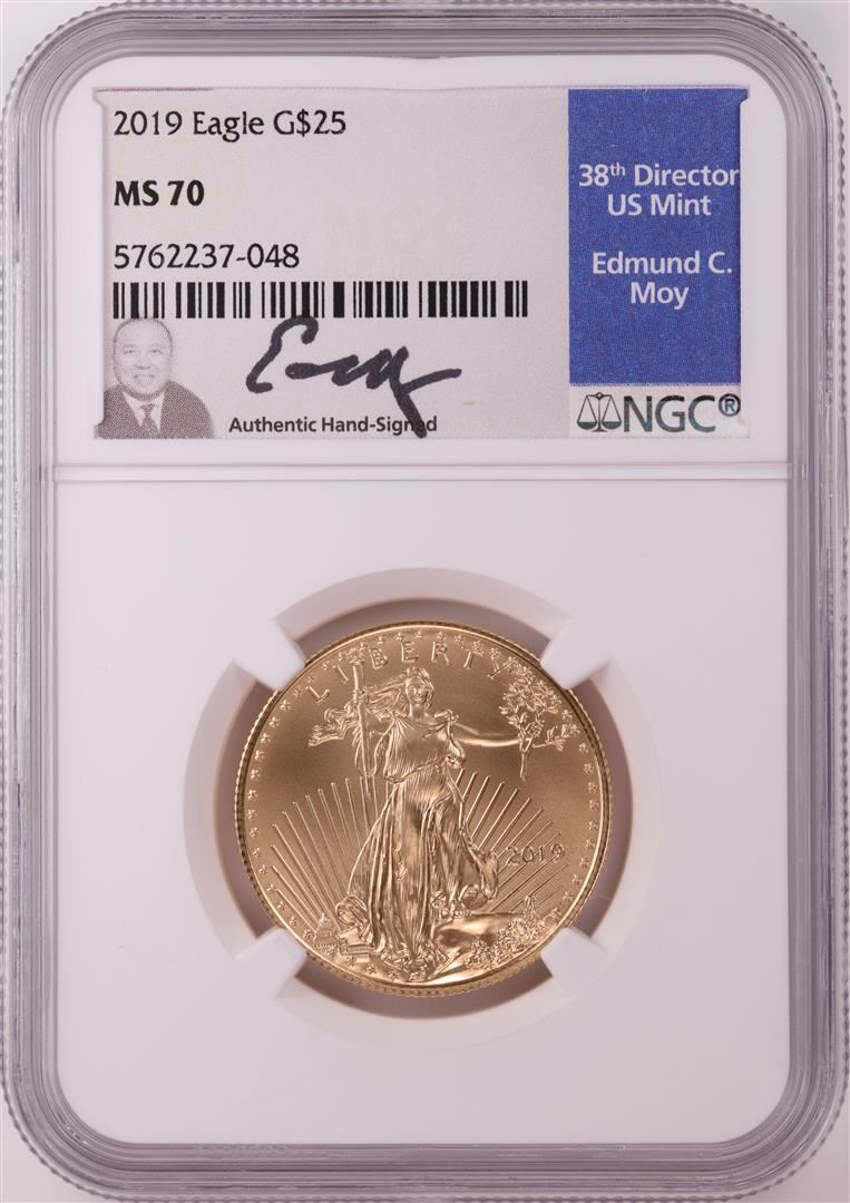 One 2019 $25 American Gold Eagle Coin NGC MS70 Edmund Moy Signature. NGC Certified.