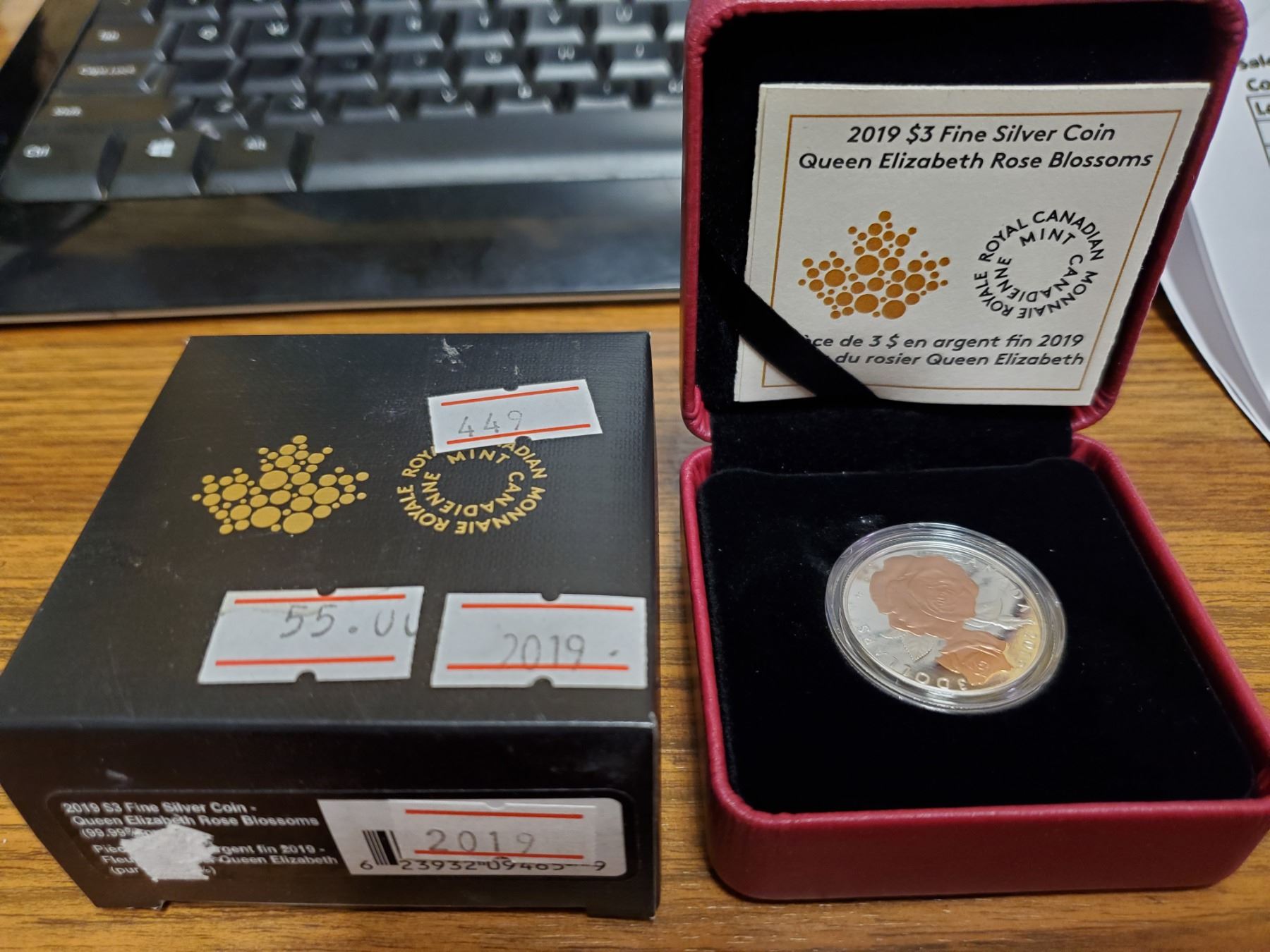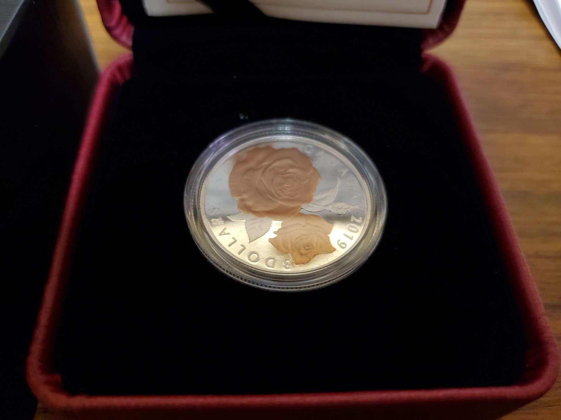 2019 $3 FINE SILVER COIN 'QUEEN ELIZABETH ROSE BLOSSOMS'