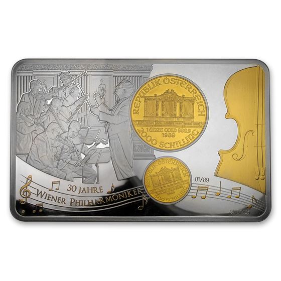 One piece 2019 3-Pc Silver Bar & Gold Coin Set (30th Anniv of Philharmonic)