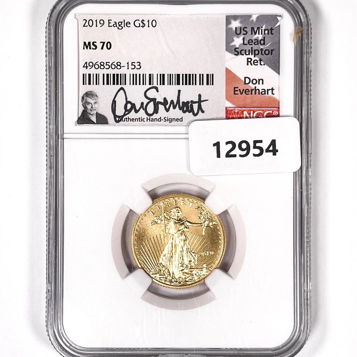 2019 $5 1/10oz American Gold Eagle NGC-MS70 Signed Everhart