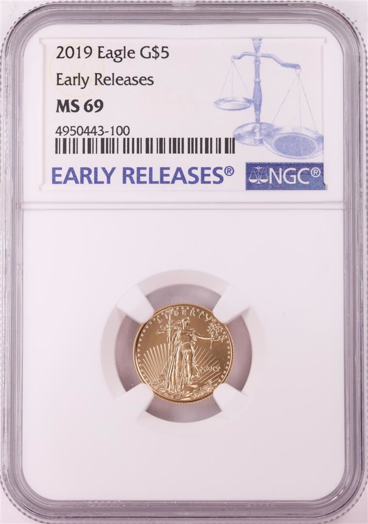 One 2019 $5 American Gold Eagle Coin NGC MS69 Early Releases. NGC Certified.