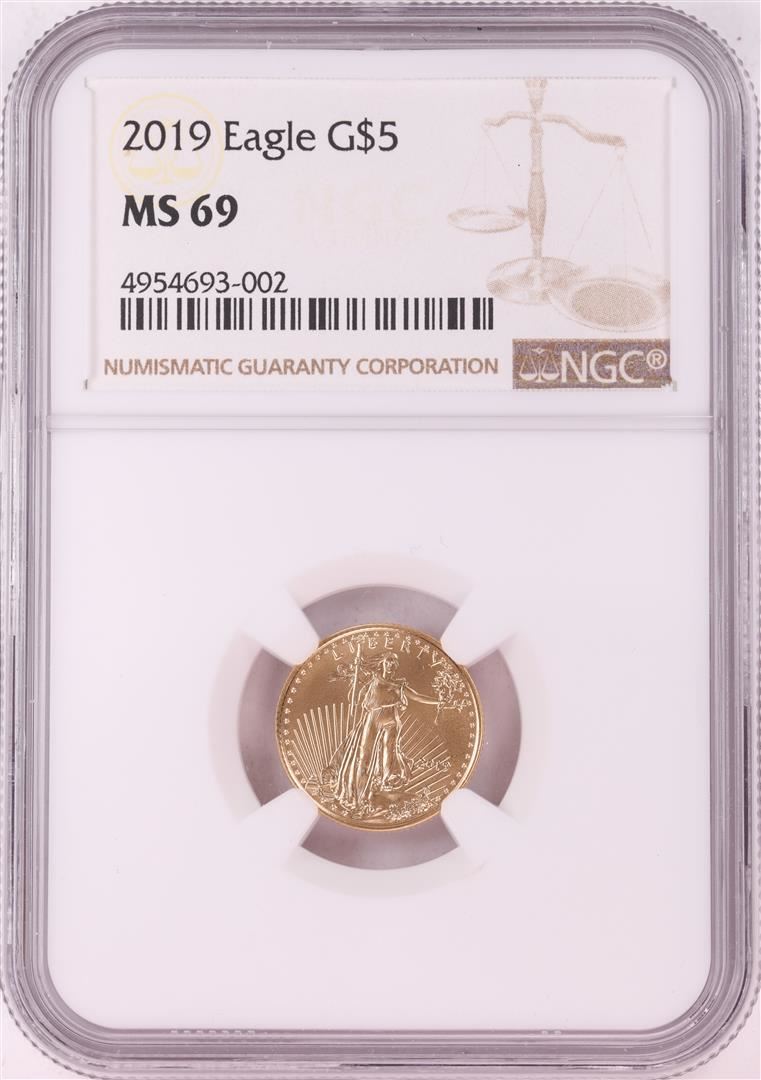 One 2019 $5 American Gold Eagle Coin NGC MS69. NGC Certified.