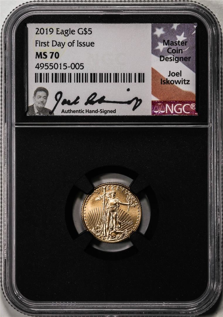 2019 $5 American Gold Eagle Coin NGC MS70 First Date Of Issue Iskowitz Signature