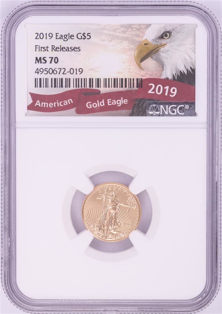 One 2019 $5 American Gold Eagle Coin NGC MS70 First Releases. NGC Certified.