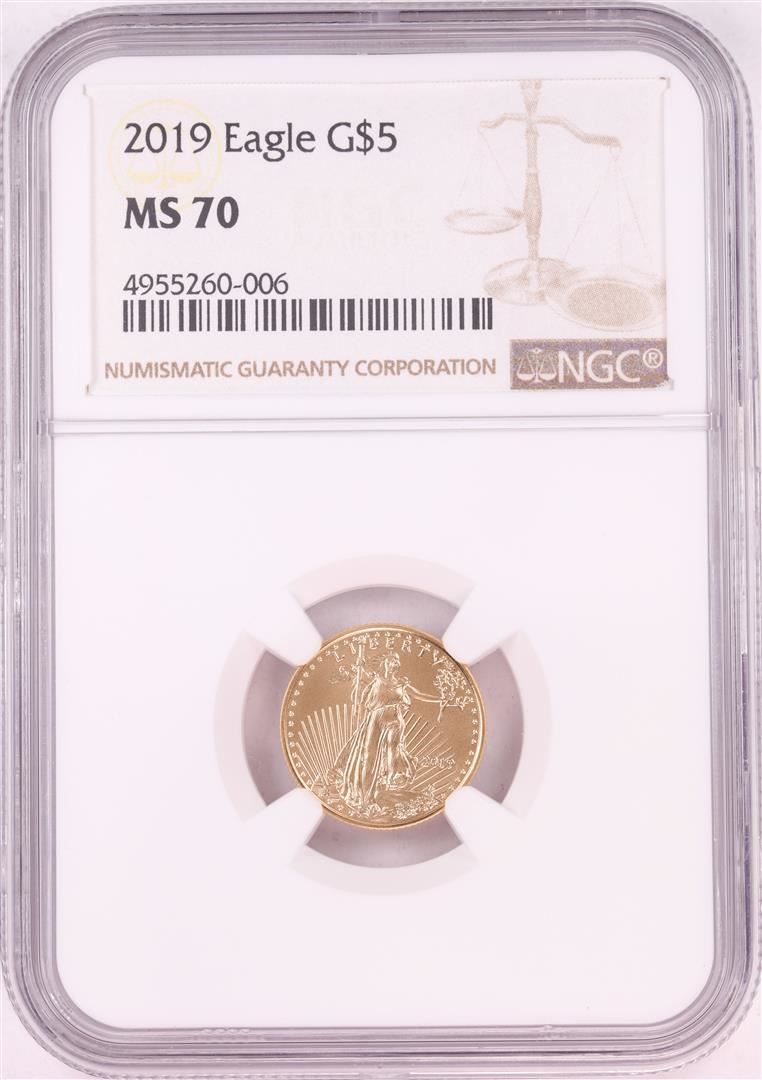 One 2019 $5 American Gold Eagle Coin NGC MS70. NGC Certified.