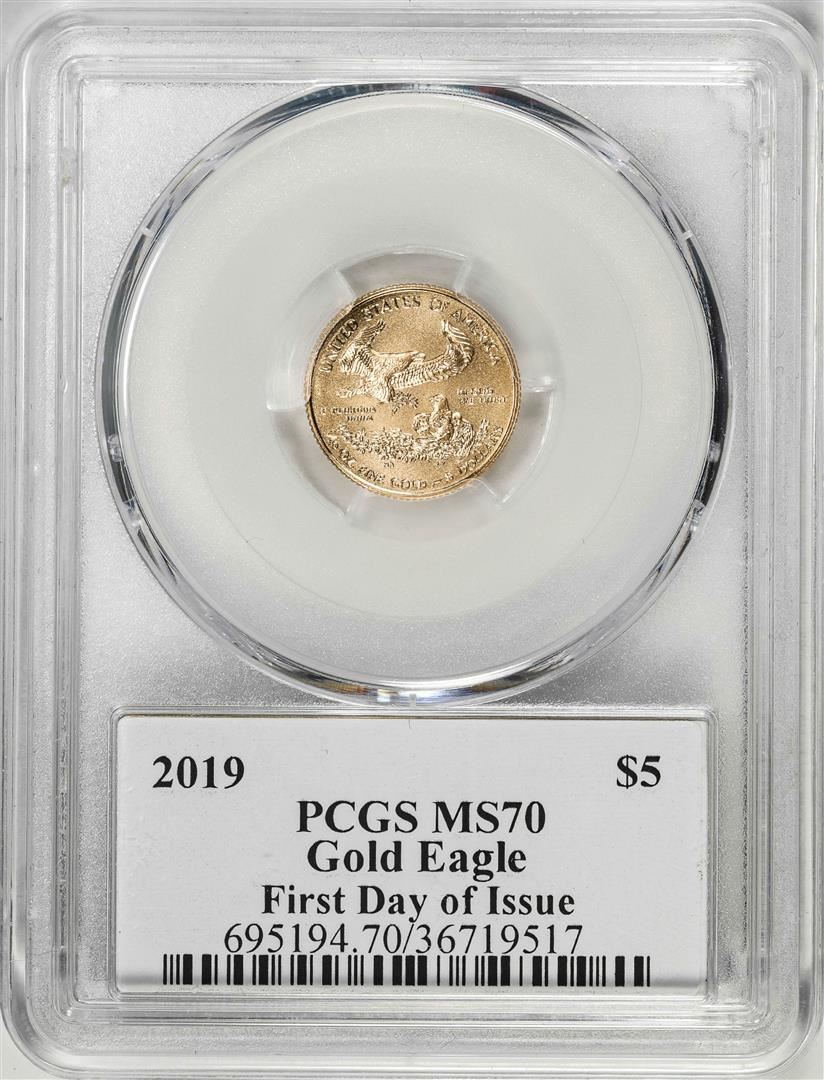 2019 $5 American Gold Eagle Coin PCGS MS70 First Day Of Issue