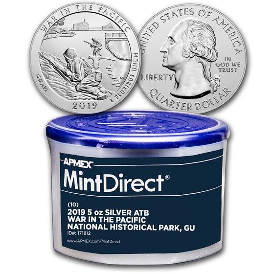 One piece 2019 5 oz Silver ATB War in the Pacific 10-Coin MintDirect® Tube