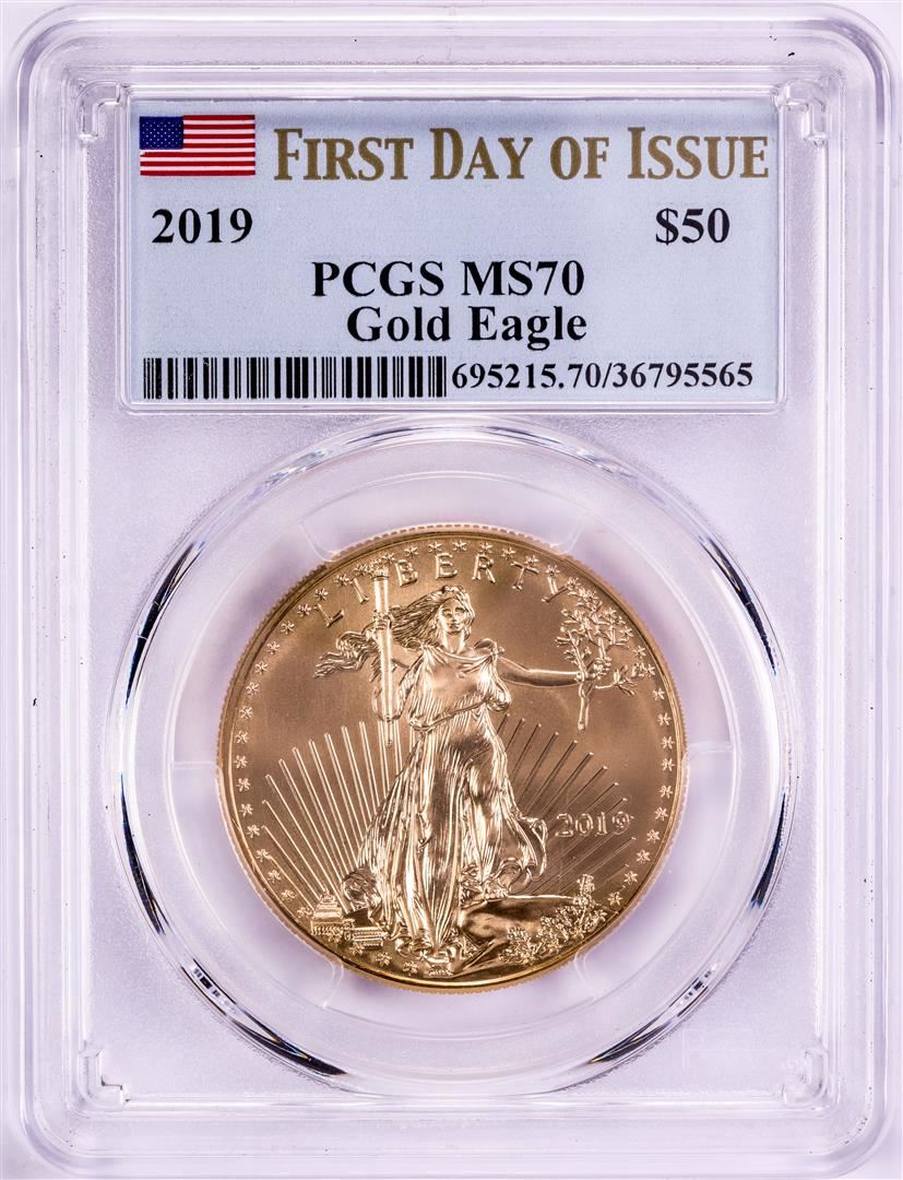 One 2019 $50 American Gold Eagle Coin PCGS MS70 First Day of Issue. PCGS Graded.
