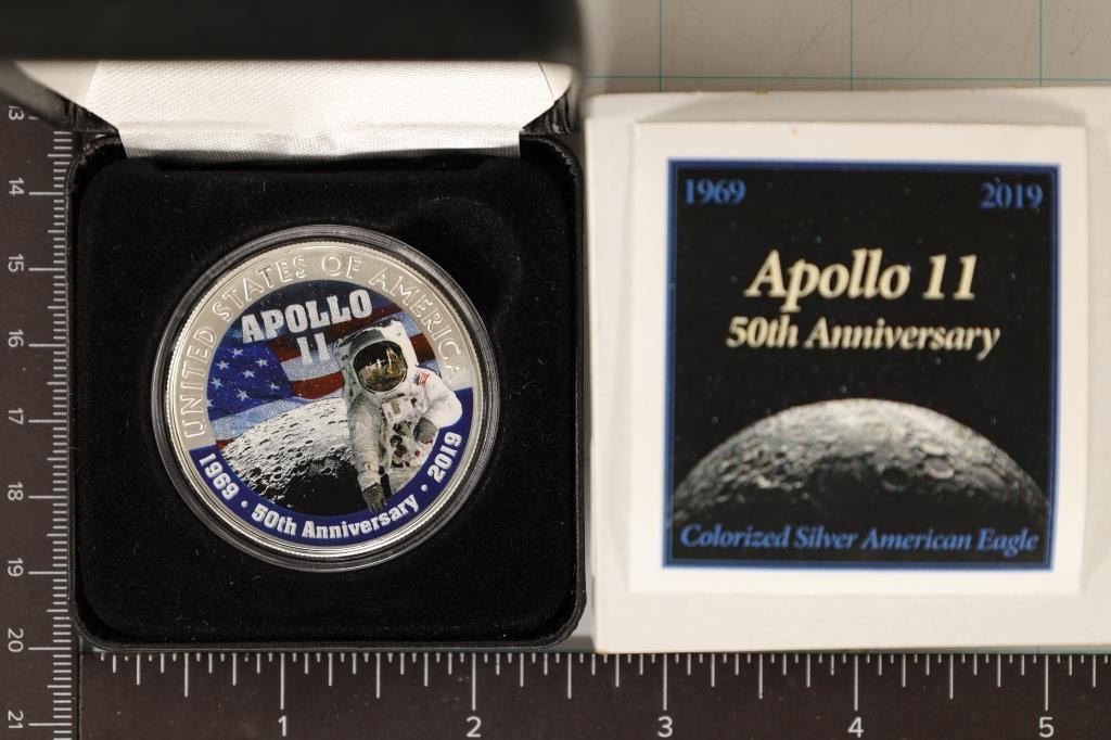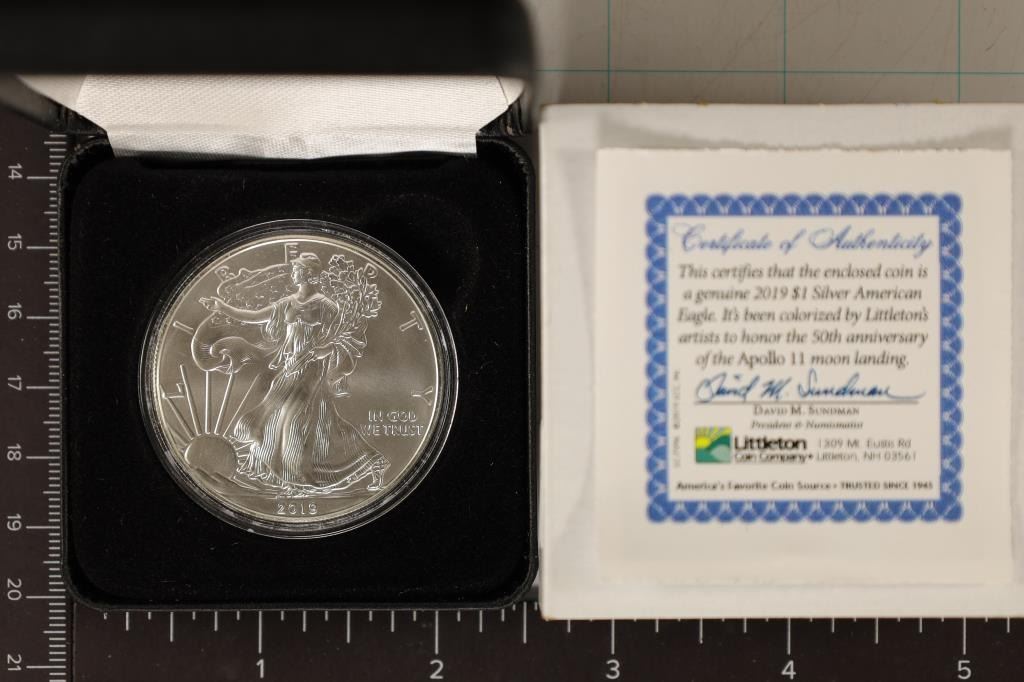 LITTLETON COIN COMPANYS ARTISTS TO COMMEMORATE THE APOLLO 11 MOON LANDING. IN BLACK FLIP CASE, OUTER BOX AND WITH CERTIFICATE