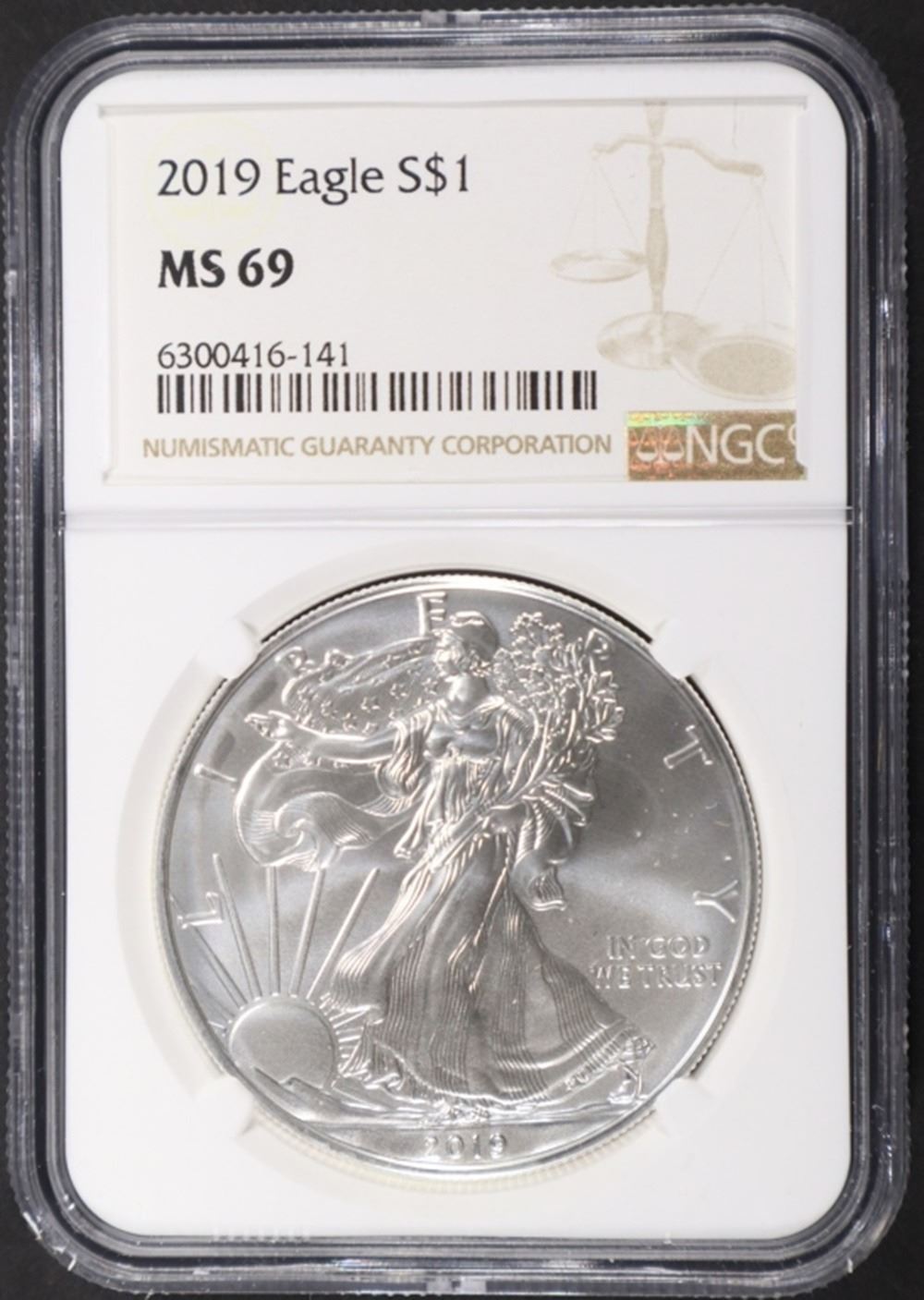 2019 AMERICAN SILVER EAGLE, NGC MS-69