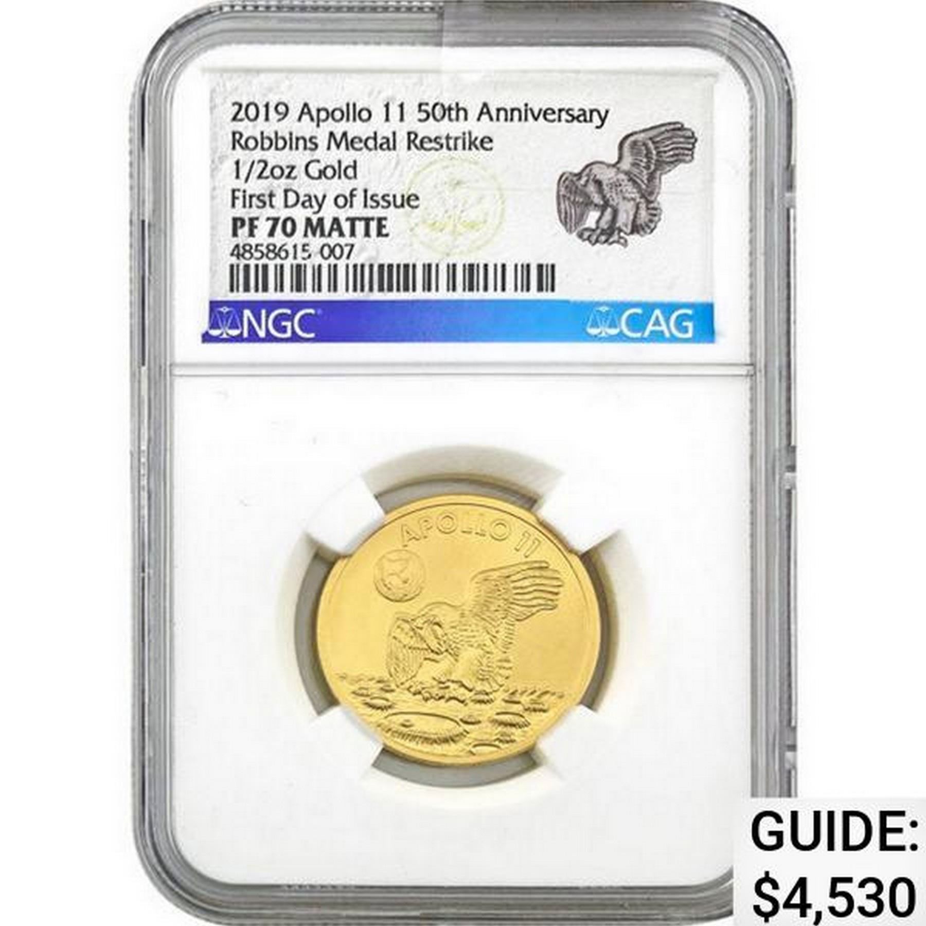 2019 Apollo 11 1/2oz Gold Medal NGC PF70 MATTE