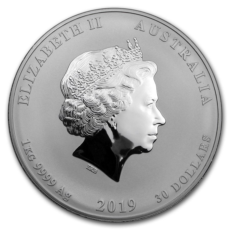 2019 Australia 1 kilo Silver Lunar Pig (Gemstone Eye)