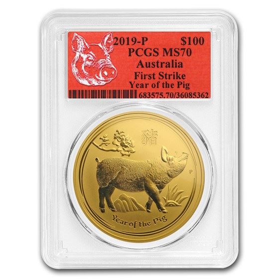2019 Australia 1 oz Gold Lunar Pig MS-70 PCGS (FS\, Red Label)