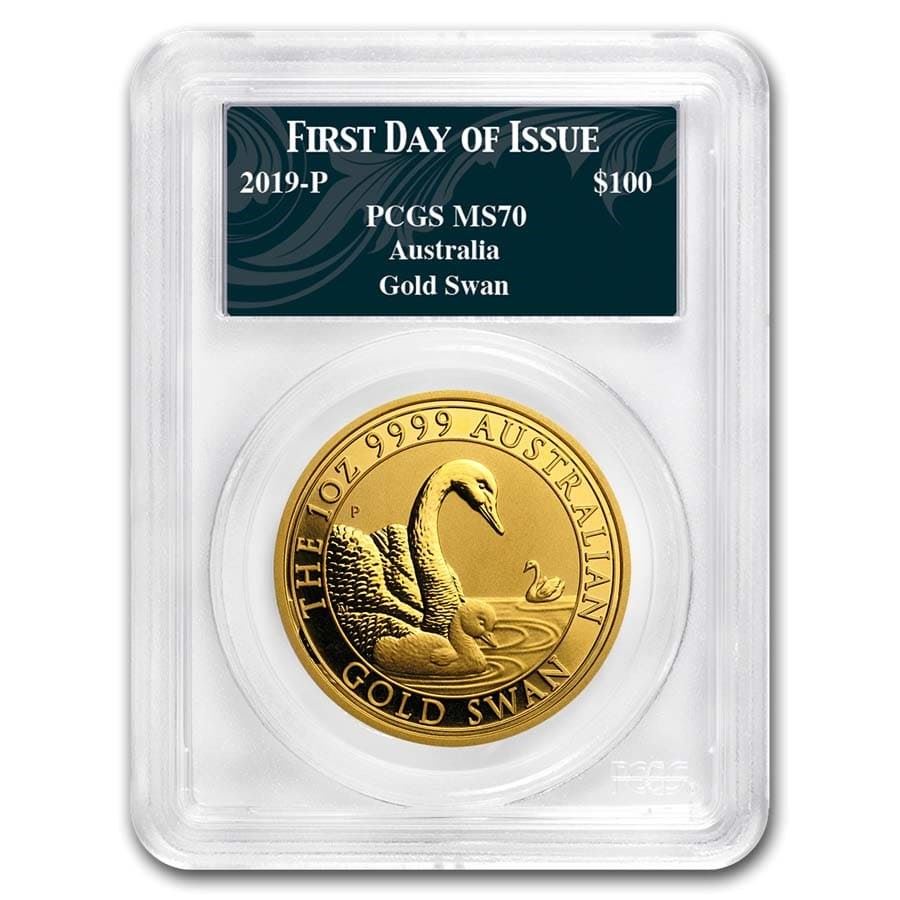 2019 Australia 1 oz Gold Swan MS-70 PCGS (FD, Swan Label)