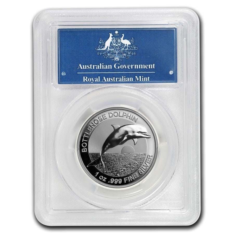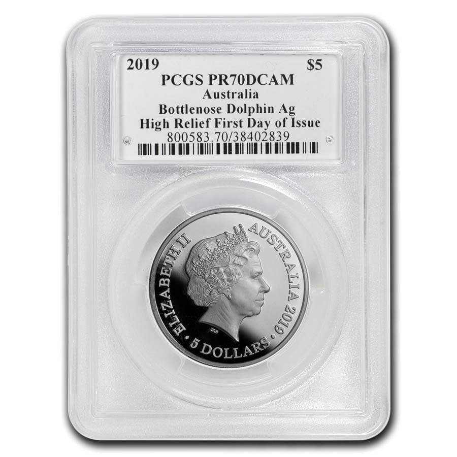 2019 Australia 1 oz Silver $5 Dolphin PR-70 PCGS (HR, First Day)