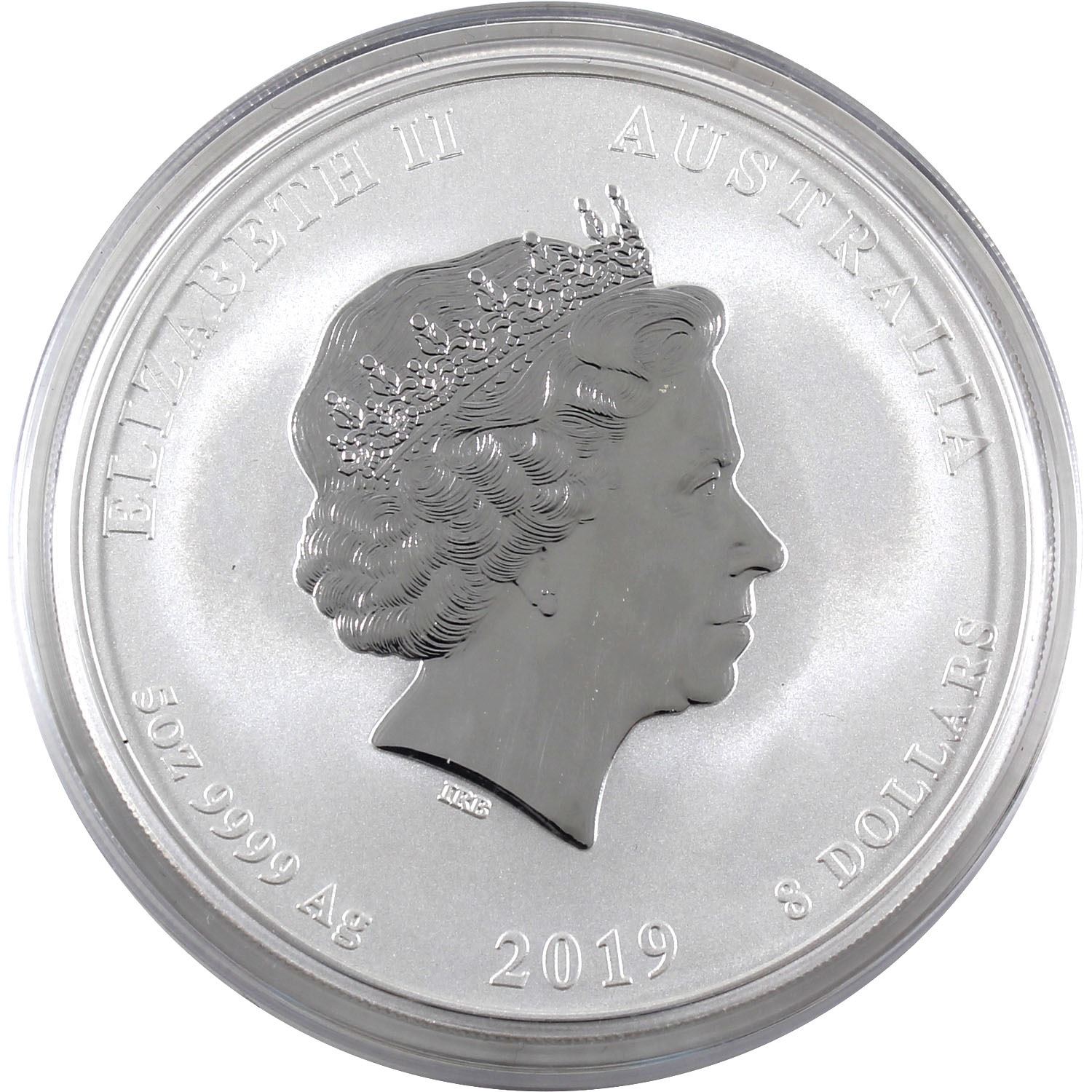 2019 Australia 5oz Year of the Pig .999 Fine Silver Coin (capsule has a crack, coin is fine). TAX Exempt.