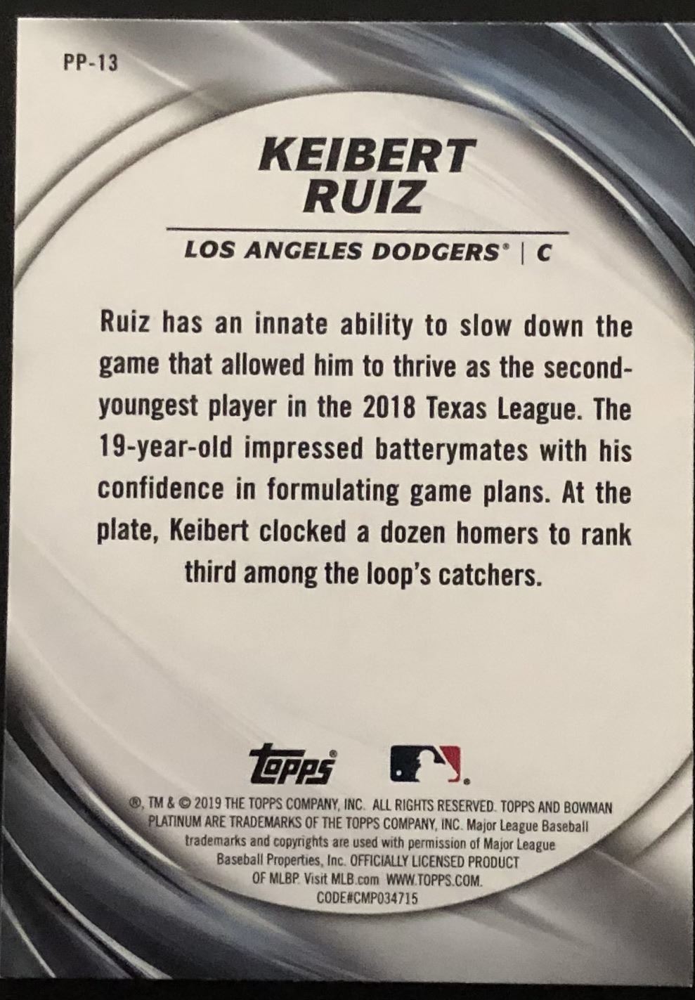 Card #PP-13 baseball, MLB, rookie
