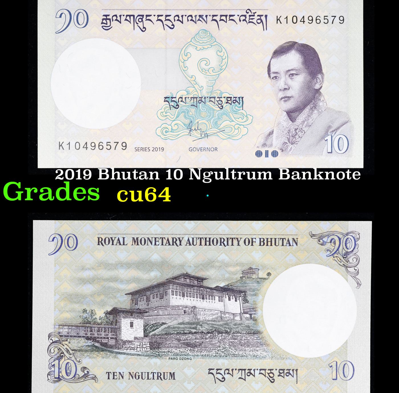 2019 Bhutan 10 Ngultrum Banknote Grades Choice CU.