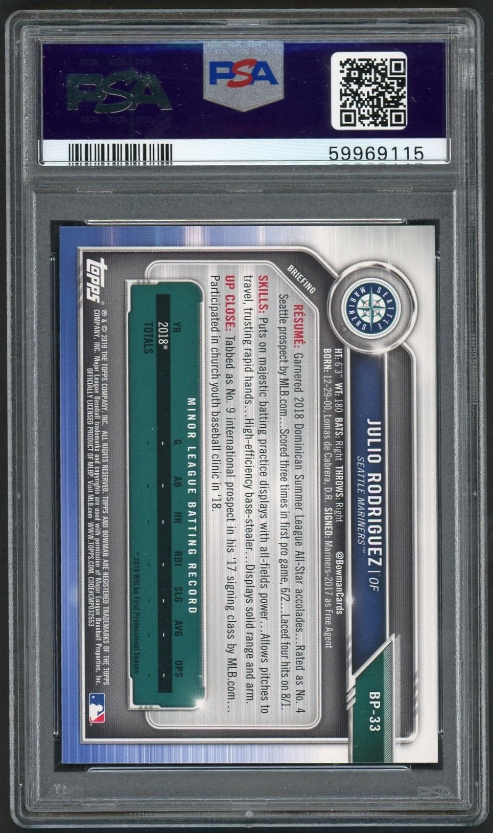 Bowman Paper Prospects rookie card of the Mariners young slugger. Graded a perfect 10 GEM MINT by PSA!