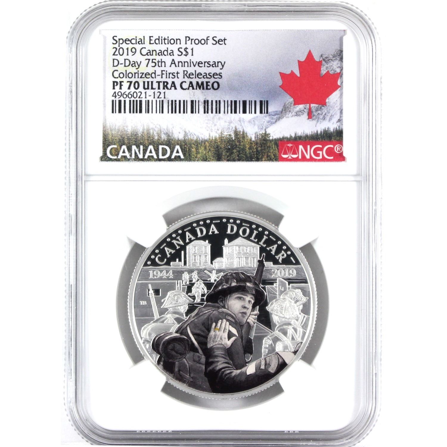2019 Canada $1 D-Day 75th Anniversary Coloured Fine Silver Dollar NGC Certified PF-70 Ultra Cameo First Releases. (TAX Exempt)