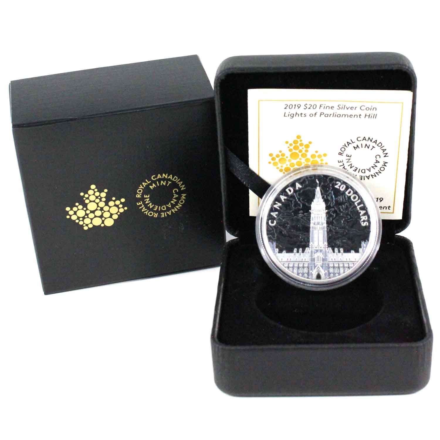 2019 Canada $20 Lights of Parliament Hill Fine Silver Coin. Low COA #0869/4500. (TAX Exempt)
