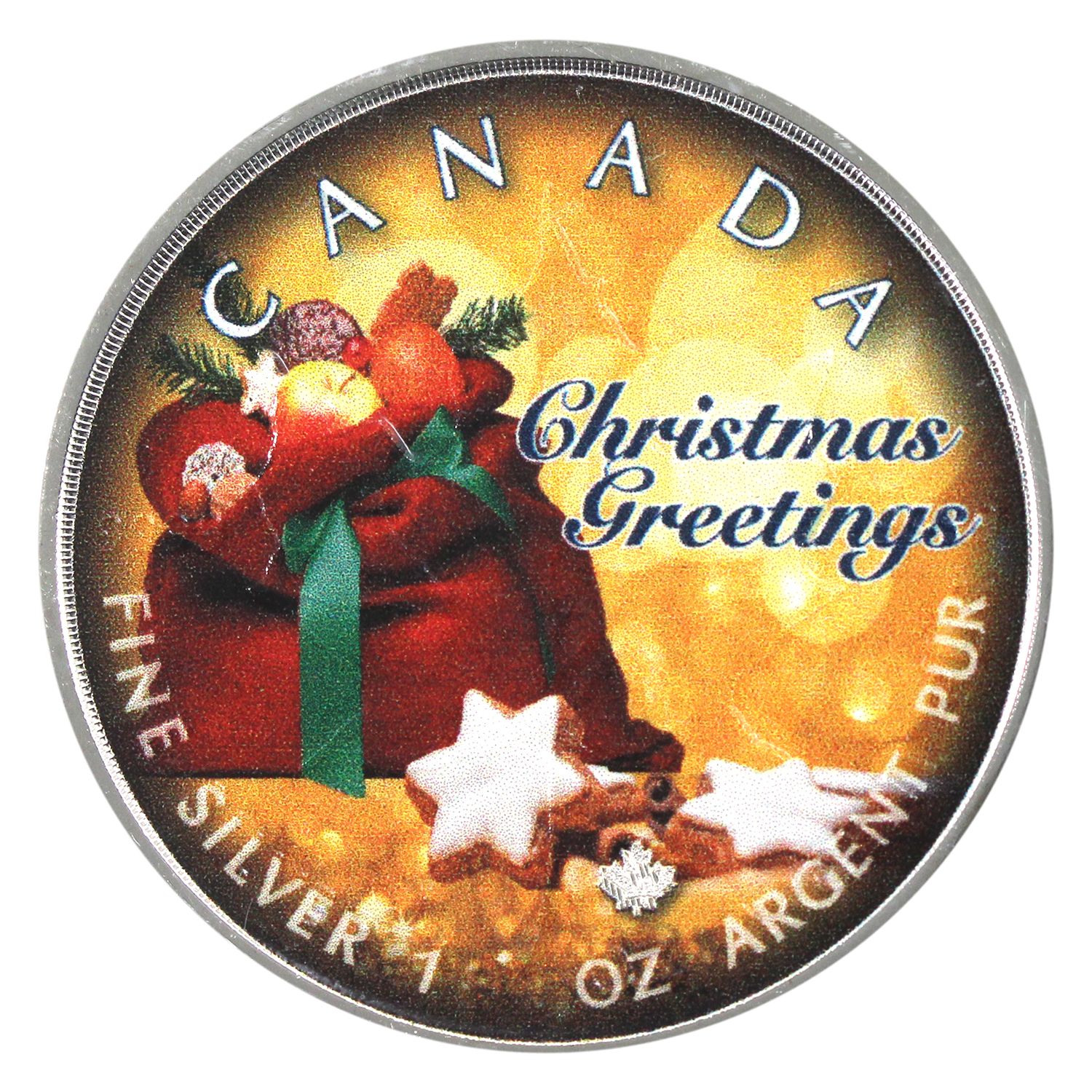 2019 Canada $5 SML Coloured Christmas Greetings .999 Fine Silver Coin w/ COA. Low Mintage of 2019! (Tax Exempt)