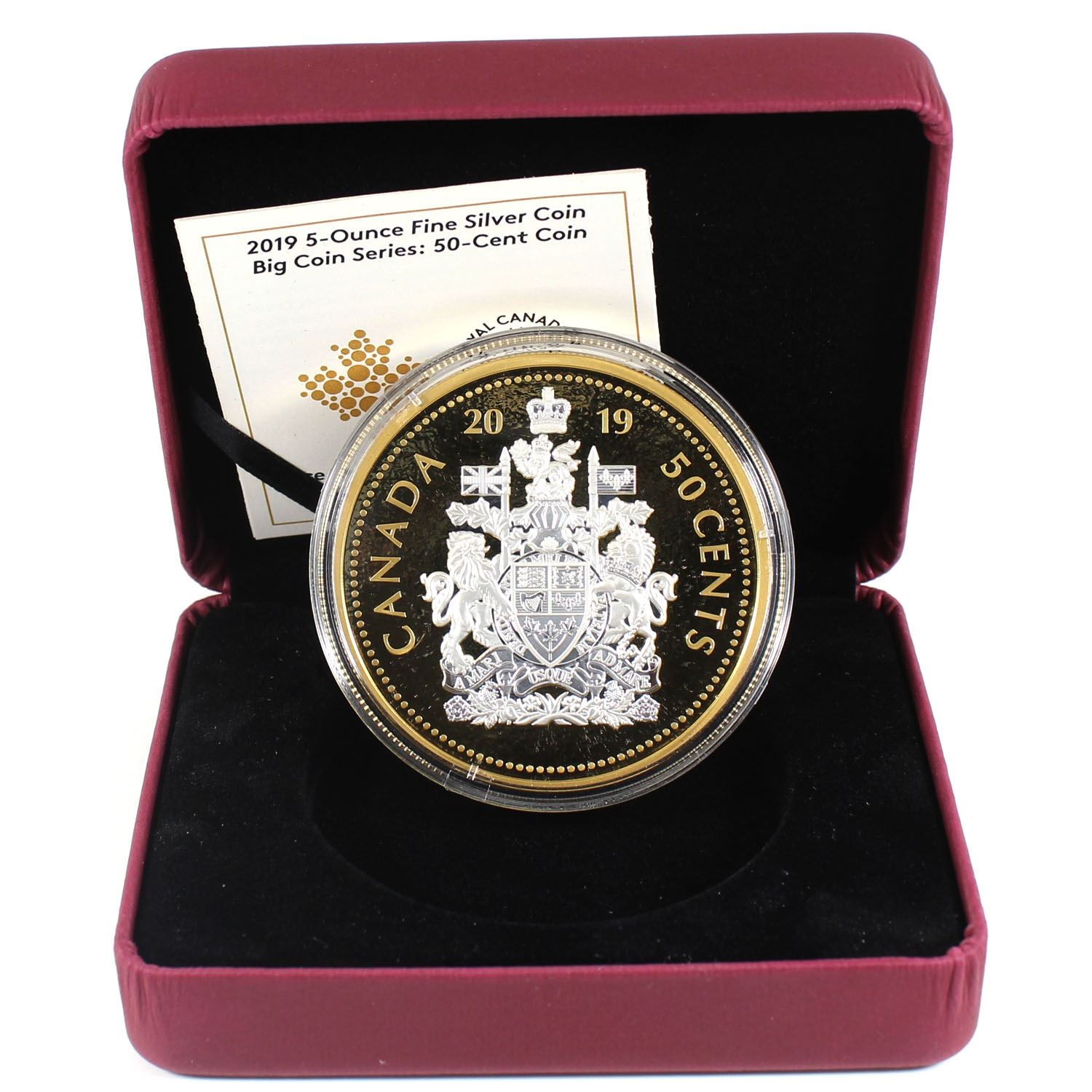 2019 Canada 50-cent Big Coin Reverse Gold Plated 5oz. Fine Silver (TAX Exempt). Outer box not included.