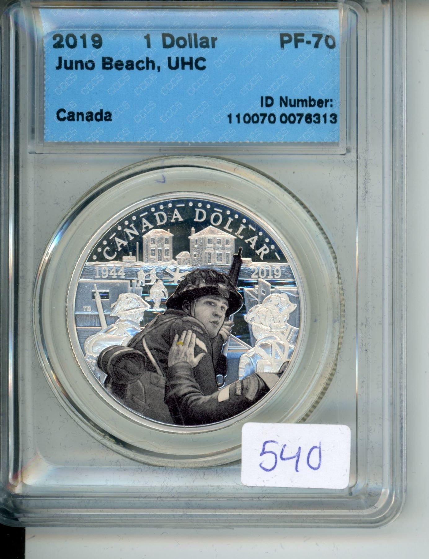 2019 Canadian CCCS Graded 1 Dollar Coin - PF-70, Juno Beach, UHC