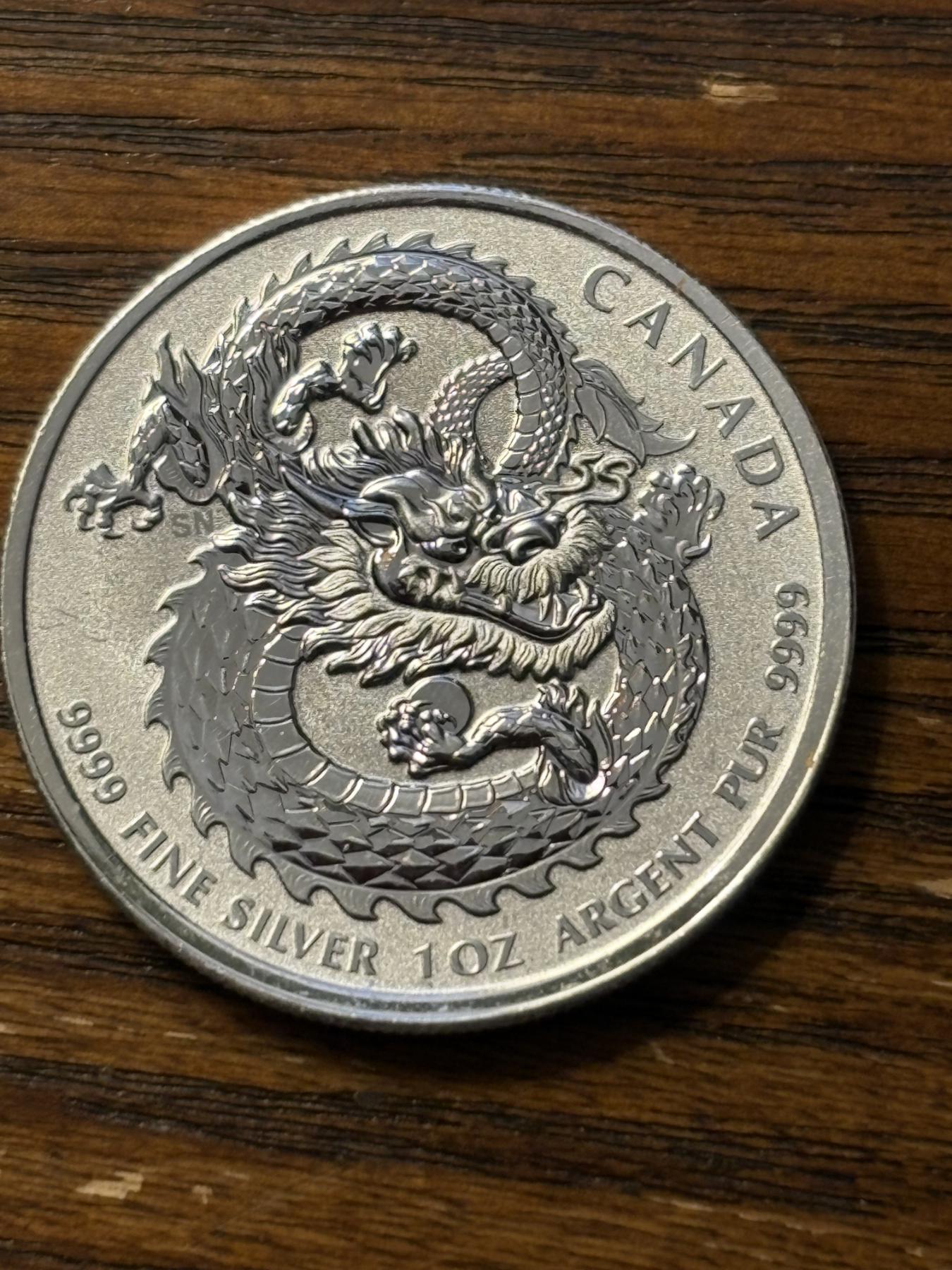 2019 Canadian Lucky Dragon High Relief Silver Coin - .999 Fine Silver - 1 Oz. - FV $5.00 CAD