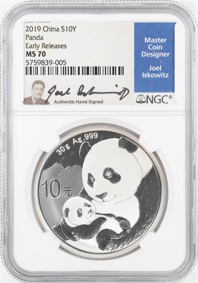 2019 China 10 Yuan Panda Silver Coin NGC MS70 Early Releases Joel Iskowitz Signature