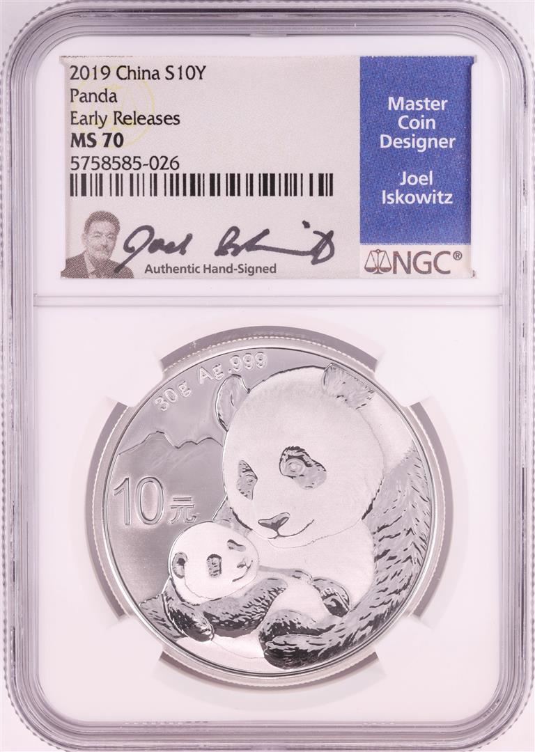 2019 China 10 Yuan Panda Silver Coin NGC MS70 Early Releases Joel Iskowitz Signature