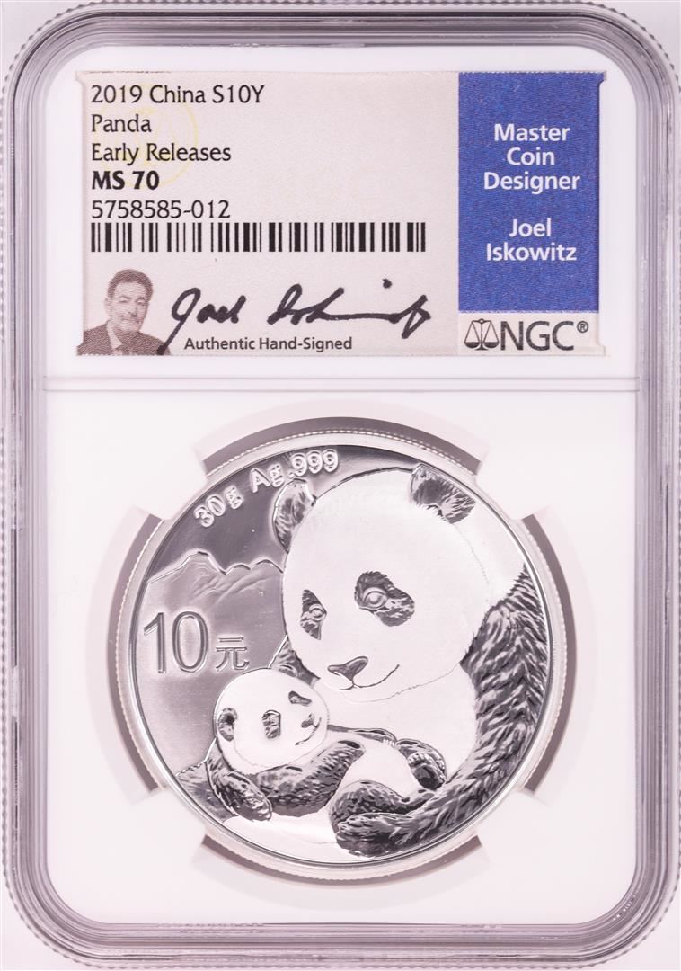 2019 China 10 Yuan Panda Silver Coin NGC MS70 Early Releases Joel Iskowitz Signature