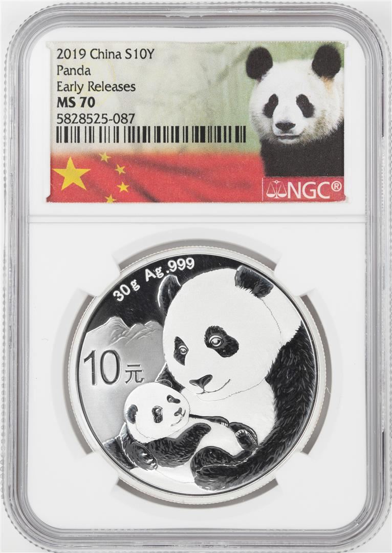 One 2019 China 10 Yuan Panda Silver Coin NGC MS70 Early Releases. NGC Certified.