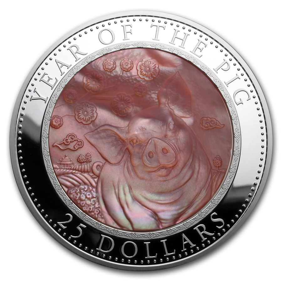 2019 Cook Islands 5 oz Silver Mother of Pearl Year of the Pig