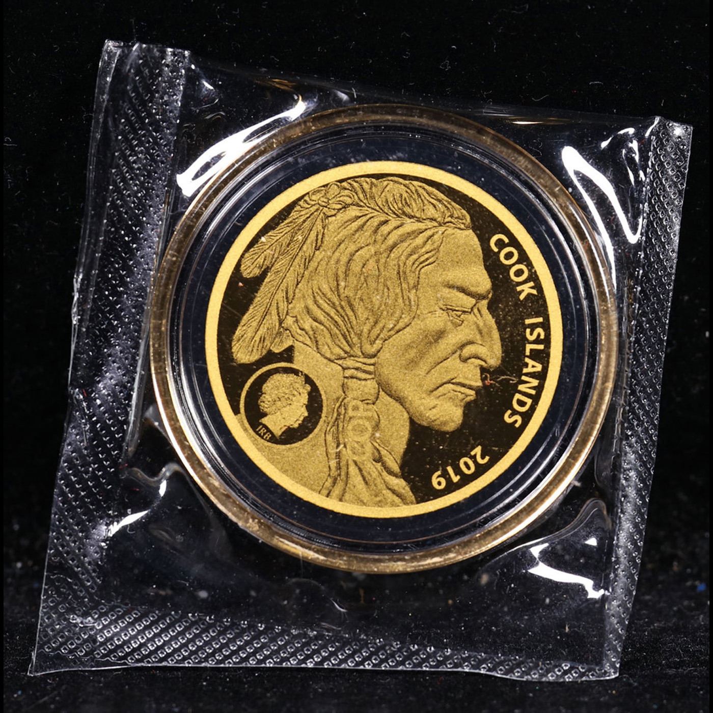 2019 Cook Islands Buffalo $5 200mg .9999 Fine Gold Coin in Capsule. Tribute to the U.S..